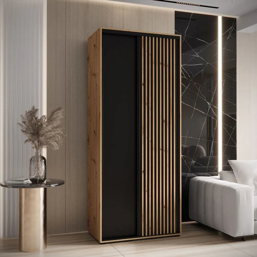Kleiderschrank Mina In Eiche/Schwarz Mit Schiebetüren, 1 Meter Pertaining To Kleiderschrank 1 Meter Breit